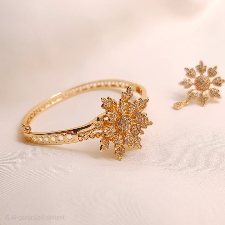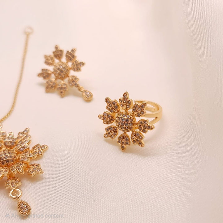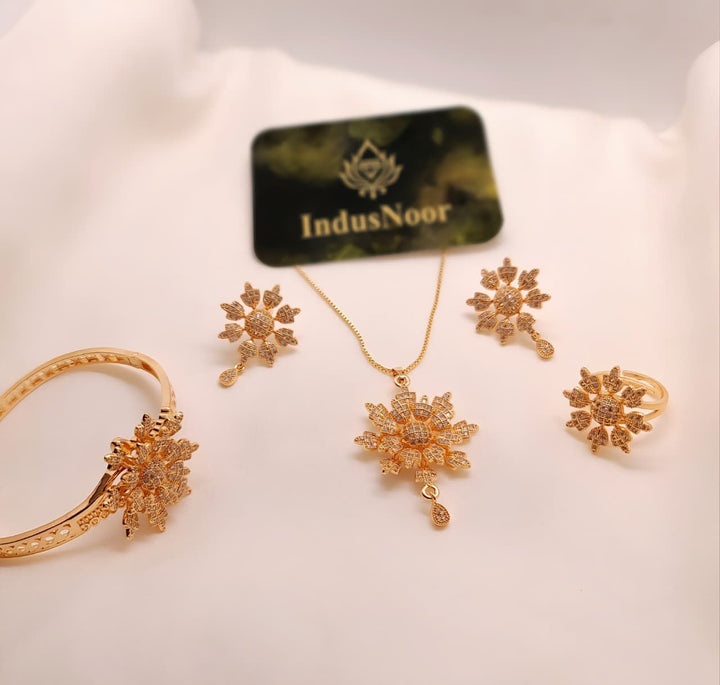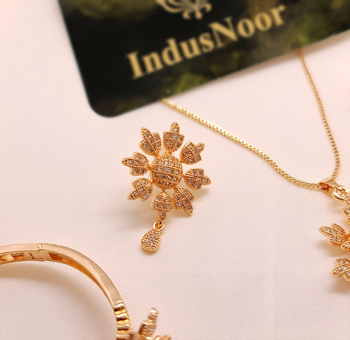 Dazzling Gold Plated Crsytal Stones Necklace Set With Bracelet for Girls/Women