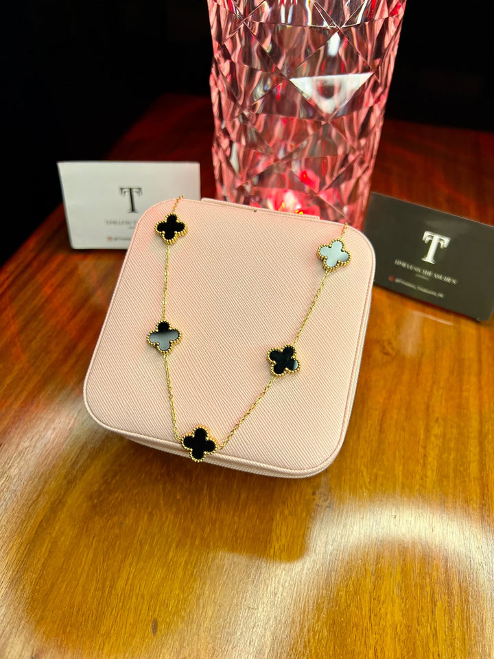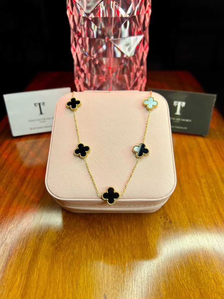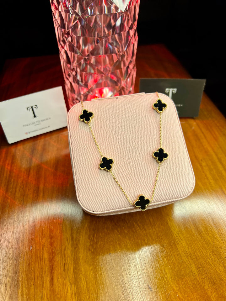 Premium Quality Stainless Steel 18k Black Clover 5 Motifs Necklace