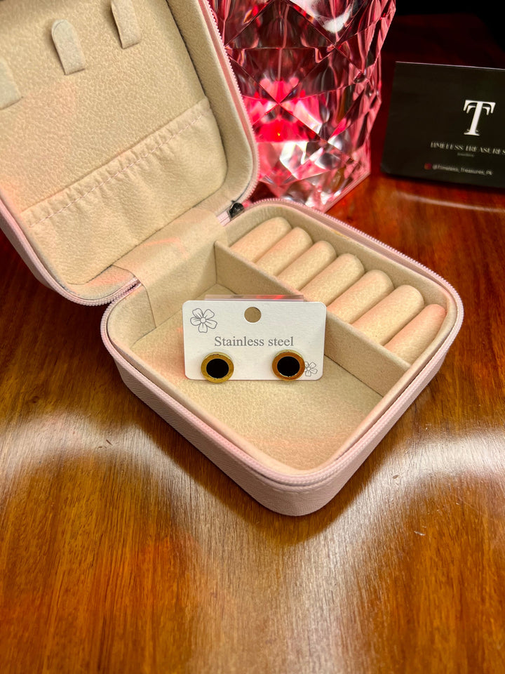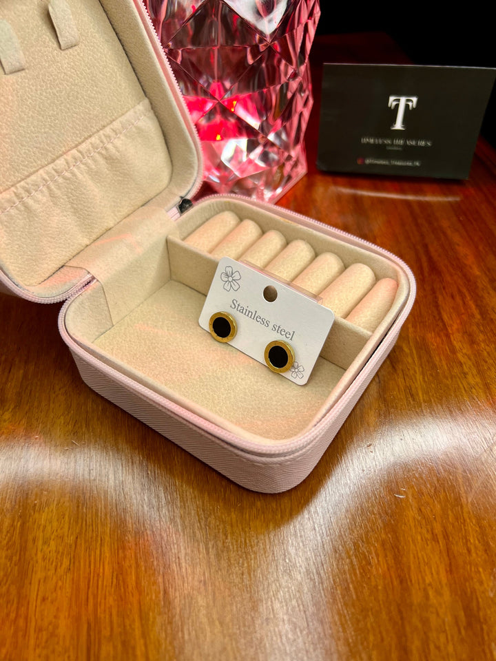 Premium Quality Stainless Steel 18k Roman Black Shell EarStuds